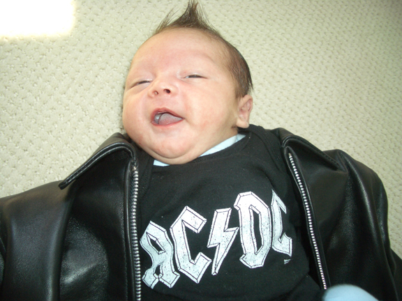 this is Mommy's favorite look. Spiked mohawk, leather jacket