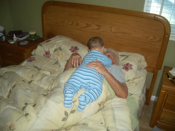 is me waking my Abuelo up. Nothing like a tubby baby flopped on